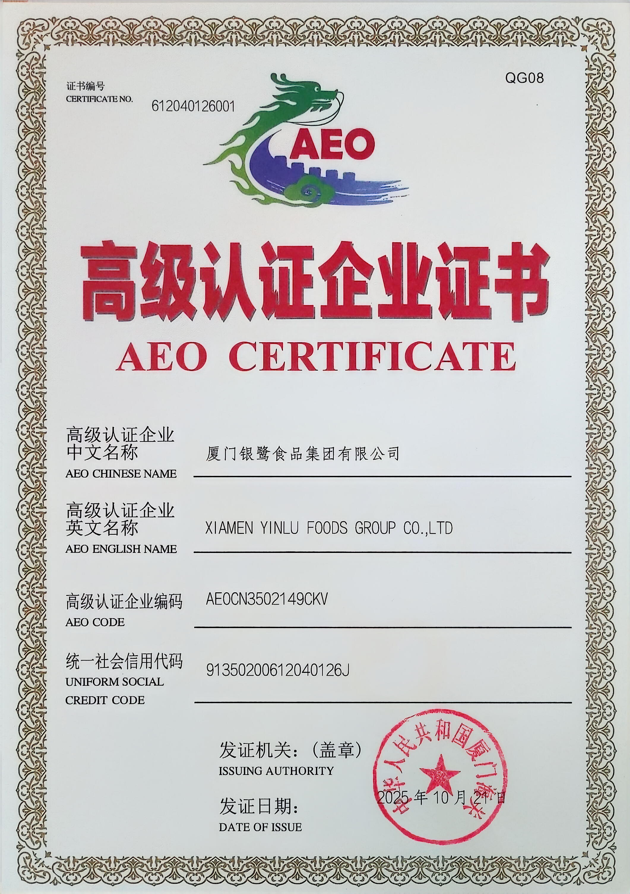 热烈祝贺银鹭食品成为厦门市首家通过海关AEO认证的出口食品生产企业